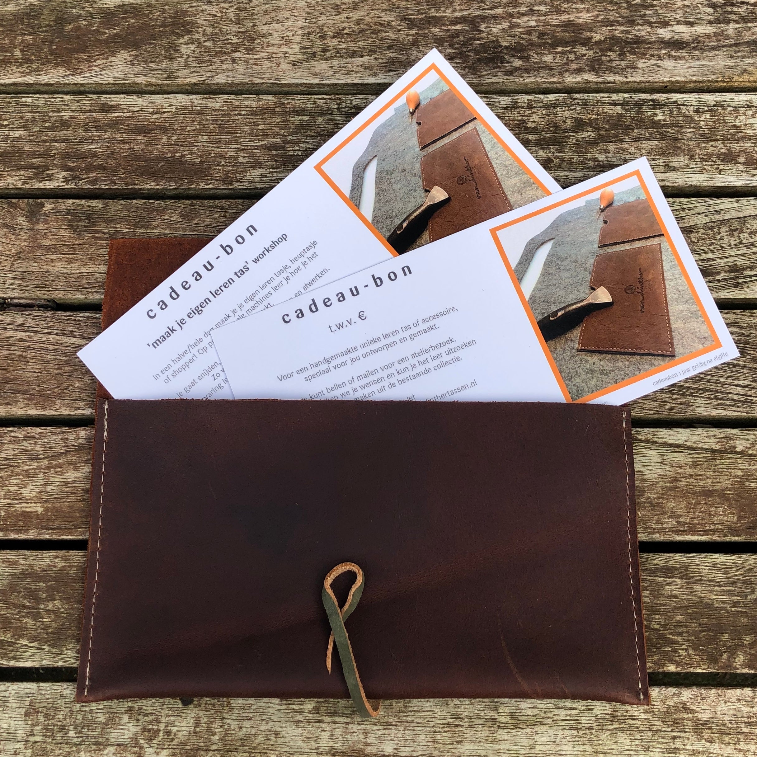 De bon is inwisselbaar in het atelier voor mooie handgemaakte leren producten.